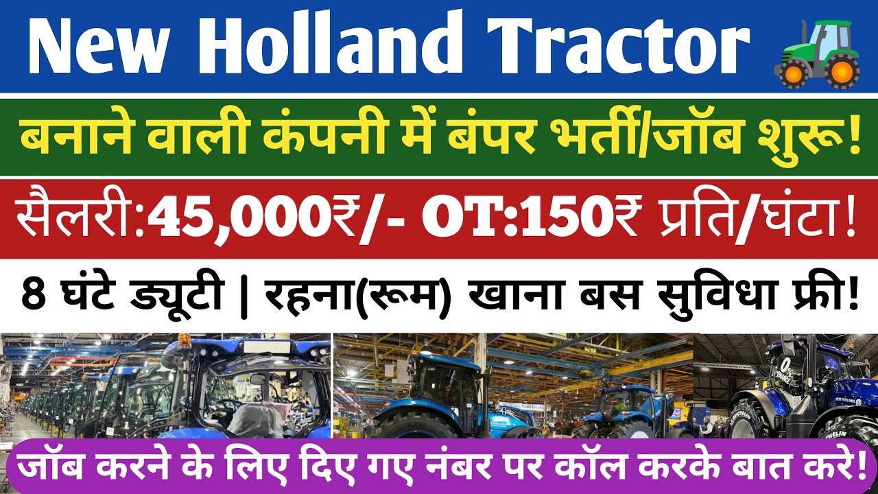 New Holland Private Limited Tractor Company Jobs: अगर आप 18 से 45 साल की उम्र के हैं और एक स्थिर और प्रगतिशील नौकरी की तलाश में हैं, तो न्यू हॉलैंड प्राइवेट लिमिटेड ट्रैक्टर कंपनी आपके लिए बेहतरीन अवसर लेकर आई है।